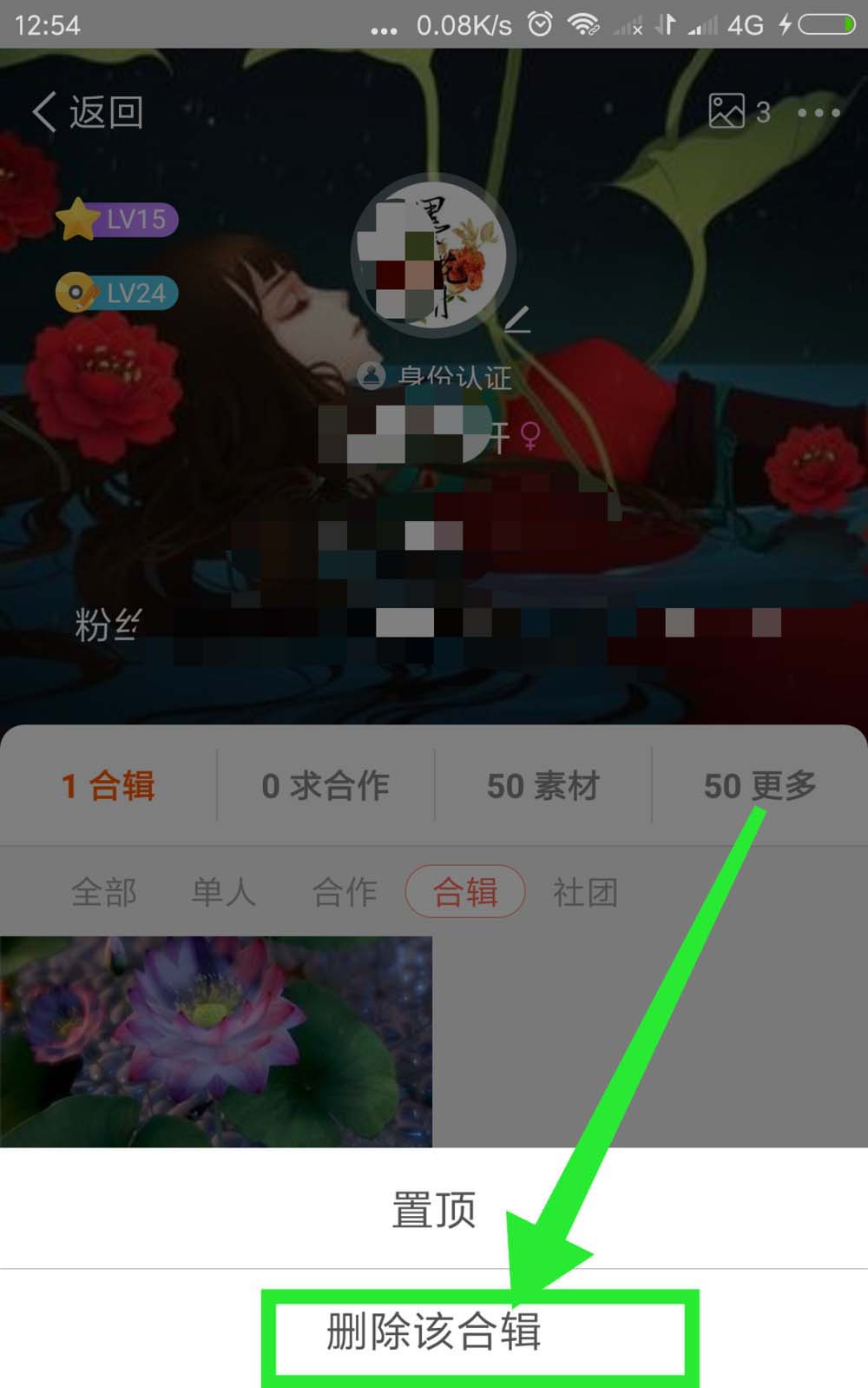 5、在弹出的选项中点击『删除该合集』;