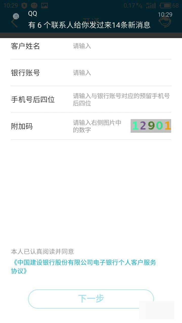 2、注销完后再返回登陆页面,左下角有一个开通的按钮,点击一下,填写你的个人信息,以及卡号、验证码、重新设置的秘密在提交信息成功