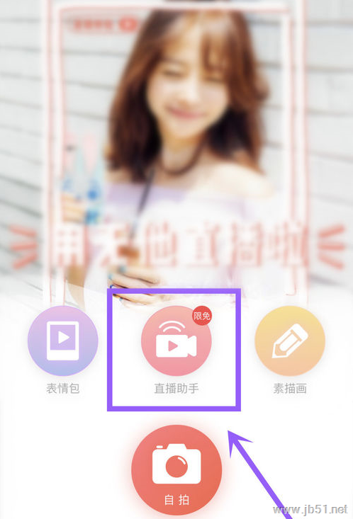 1、用户们想要利用无他相机来进行直播的话,就需要先来点击主页的“直播助手”按钮,从而点击使用无他相机来进行直播了。