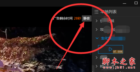 4.击广告的右上角位置,在广告数秒的右侧,有个【静音】按钮,有声音的时候是灰色的,我们用鼠标左击一下,这时那个【静音】的底色就会变成黄色,相应的广告声音也就没有了。