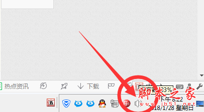 6.如果你使用的是音箱,直接关闭电脑的声音也有同样效果,点击【系统图标栏】【时间】边上的【声音】图标,如下图所示。
