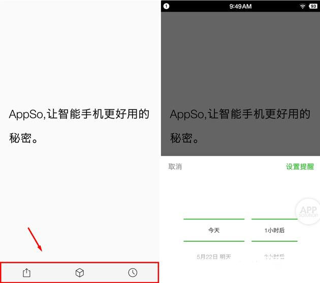 平时在微信对话界面阅读较长的文字时,都习惯双击对话框来放大文字。在新版微信6.6.7中,你不仅能更舒适地阅读,同时还支持转发、收藏这段文字,甚至是设置时间提醒,如下图所示。
