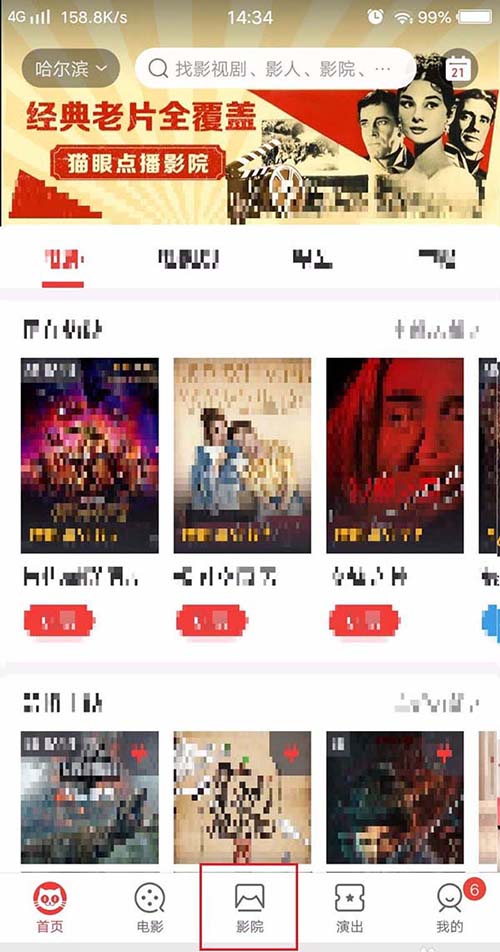 2、首先打开猫眼APP,点击进入影院,如图所示