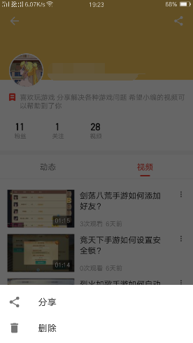 4、视频的页面,再选择你想要删除的视频,点击视频后面的三个点。