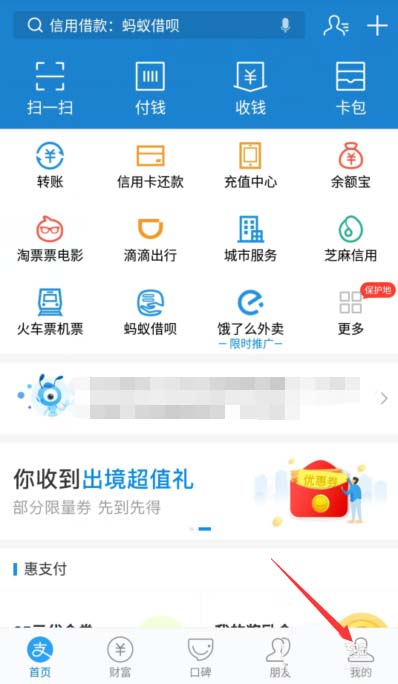 1、我们打开支付宝客户端之后,单击面板右下角的“我的”按钮。