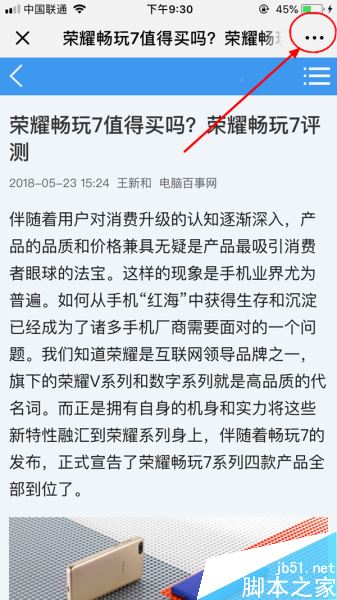 更新最新版之后,我们在微信打开一个文章,然后在页面的右上角点击【...】选项,如下图所示。