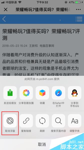 微信文章浮窗怎么关闭?