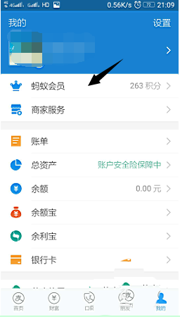 3、点击进入头像下方的“蚂蚁会员”,点“赚积分”一栏,就能看到所有赚取蚂蚁积分的方式。“签到赚积分”,是刚推出的,每天签到,都能获得蚂蚁积分。最高每天获得7个积分,断签了只能重来。(签到获得的积分可以正常使用,但不计入蚂蚁会员等级积分)。