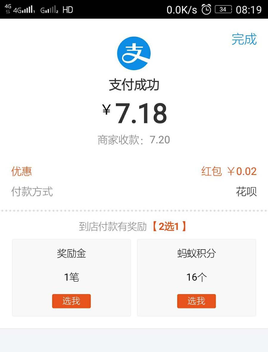 5、此外,每周四到周日,在线下实体店消费大于2元;就有机会,选择领取奖励金天猫超市券或16个蚂蚁积分(只能从中选择1个奖励)。
