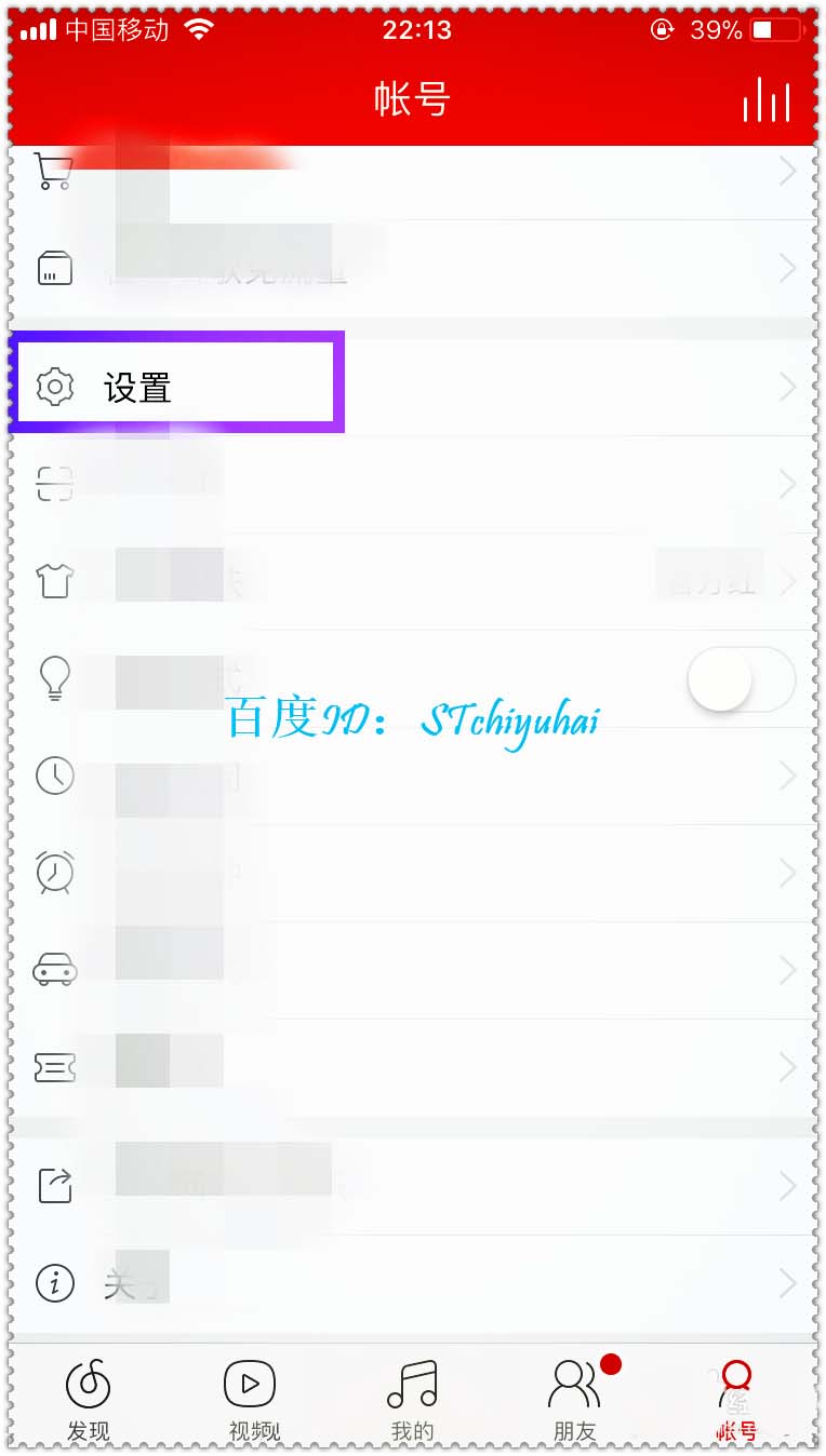 3、在账号界面找到设置,进入设置界面,点击均衡器。