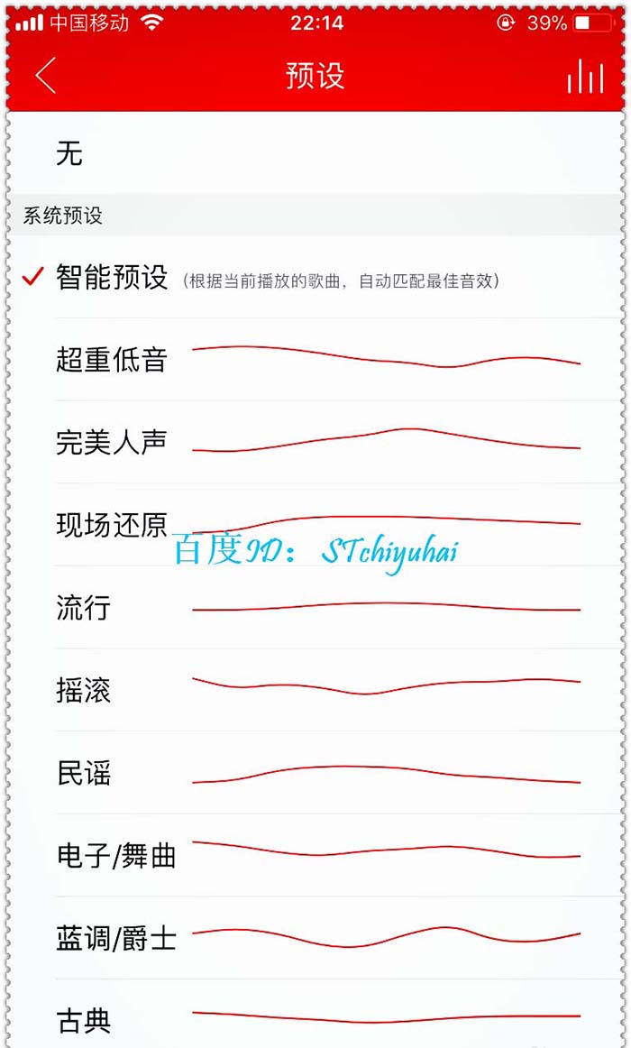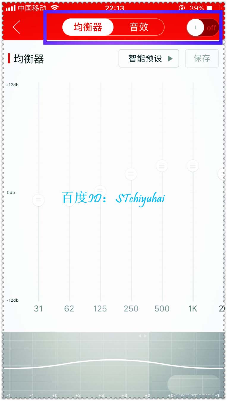 5、均衡器可以选择自己要的模式,或者直接选择智能模式,如果要自己设置,可以上下滑动均衡器标尺改变参数。