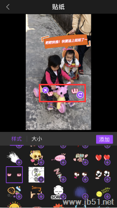 贴纸的添加类似于添加字幕。