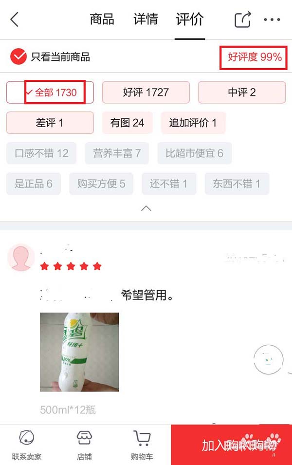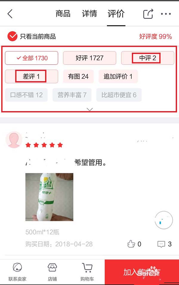 5、大的红色框框中的这些评价都是可以看的,最佳查看的是差评,再来可以看中评。