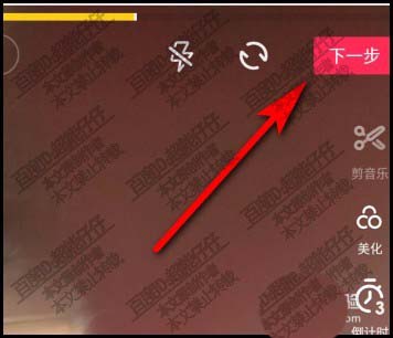 4、这时候,就会转到拍摄短视频的界面啦。短视频拍摄完成,就点:下一步