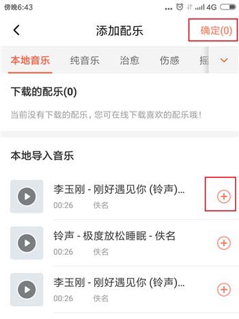 5、选择自己喜欢的音乐并点击后方的【+】按钮。