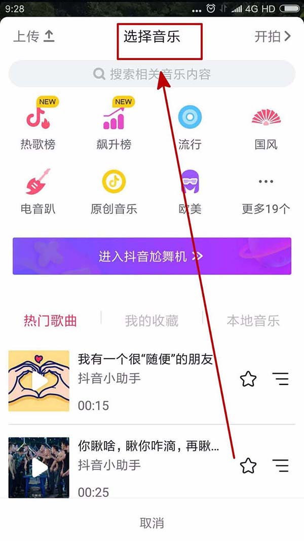 2、发布视频前我们需要先选择配乐,配乐有很多种类,我们可以向下拉找到自己喜欢的那一个。