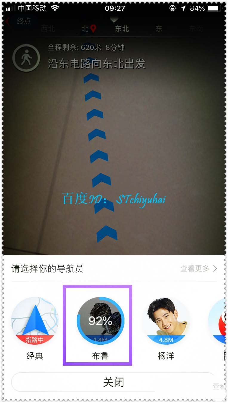 6、在角色的选择中,可以选择迅猛龙布鲁,这个需要一点流量,下载下来后,发现导航标变成迅猛龙,就像自己养了一只迅猛龙在前方带路一样,挺不错的。