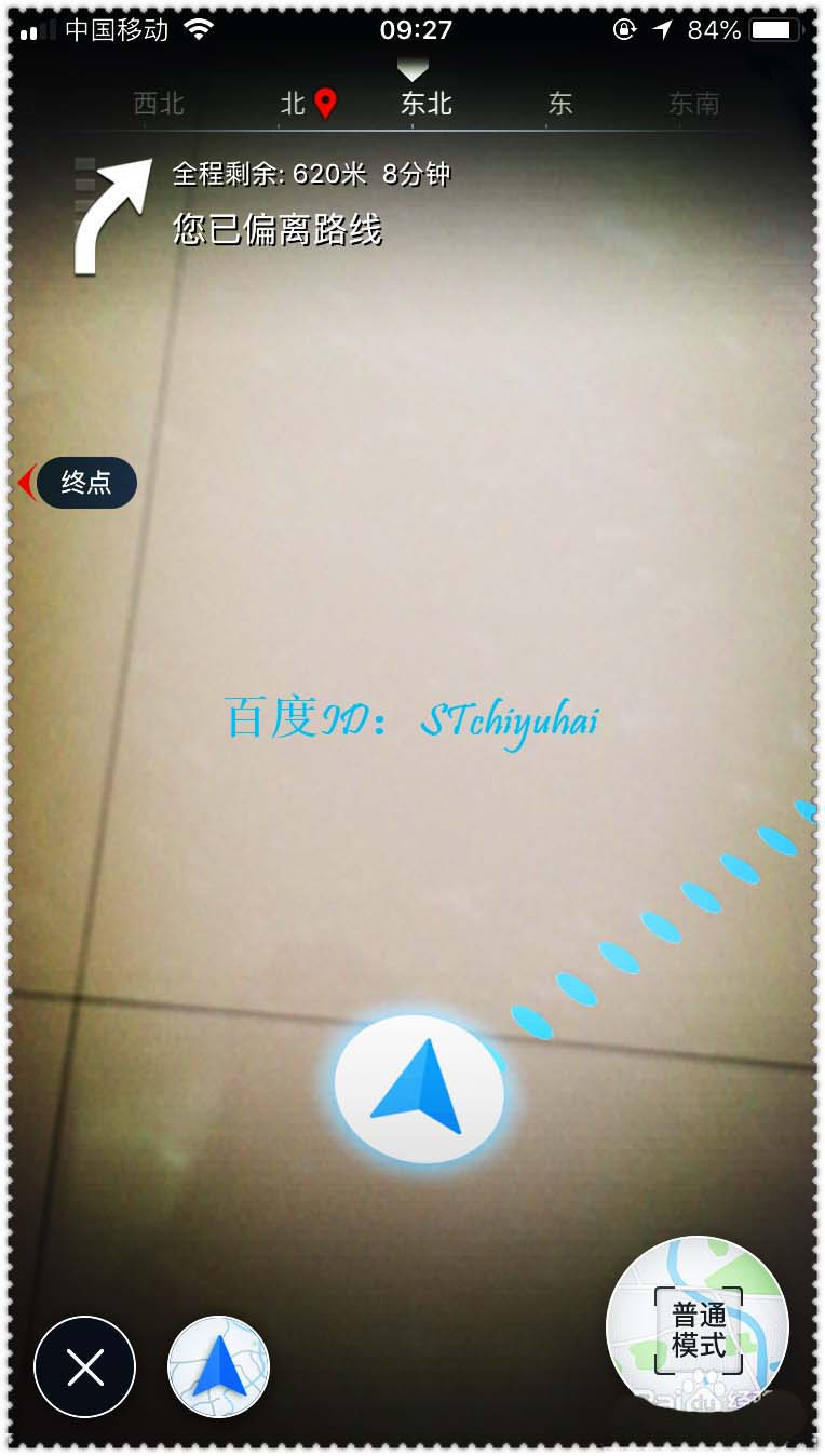 5、可以看出基础版的AR实景导航,点击底部三角形导航标志。
