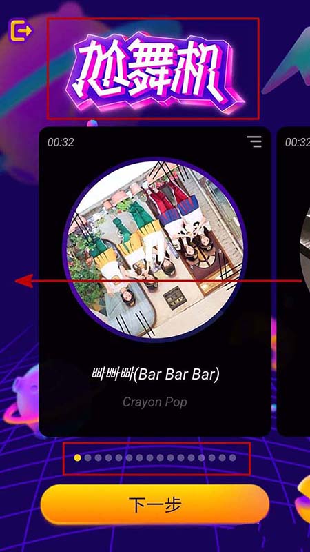 3、进入尬舞机之后我们首选需要选择舞曲,我们向左滑动可以选择舞曲。