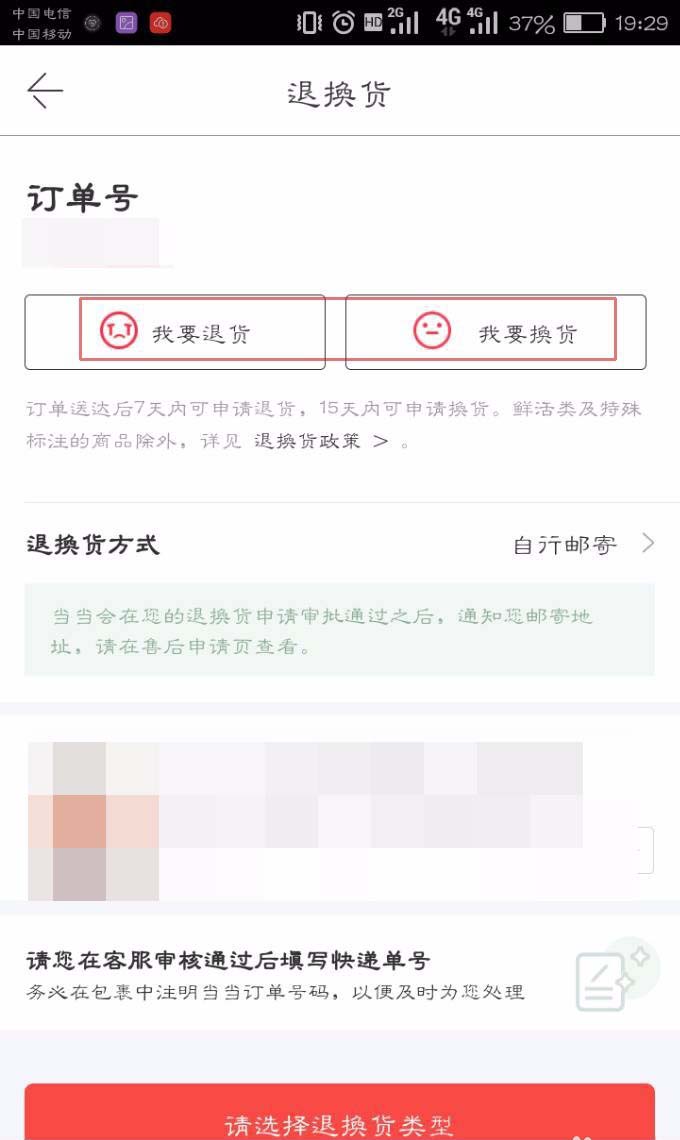 4、选择我要退货或者我要换货。(注意在确认收货后7天以内才行)
