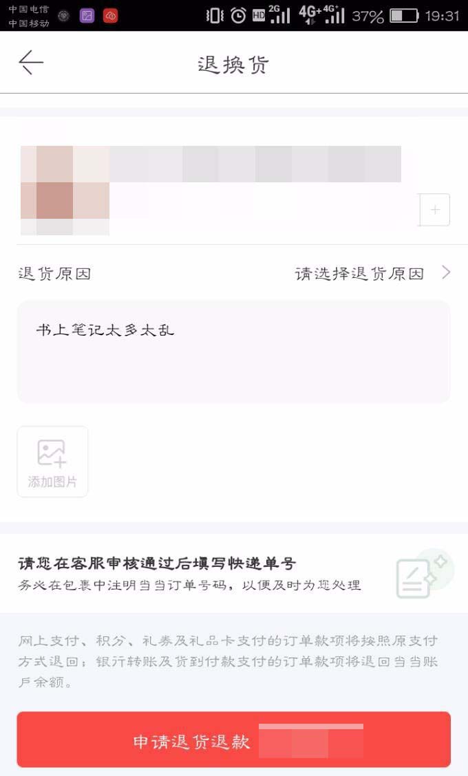 5、写好退货原因后,点击“申请退货退款”。