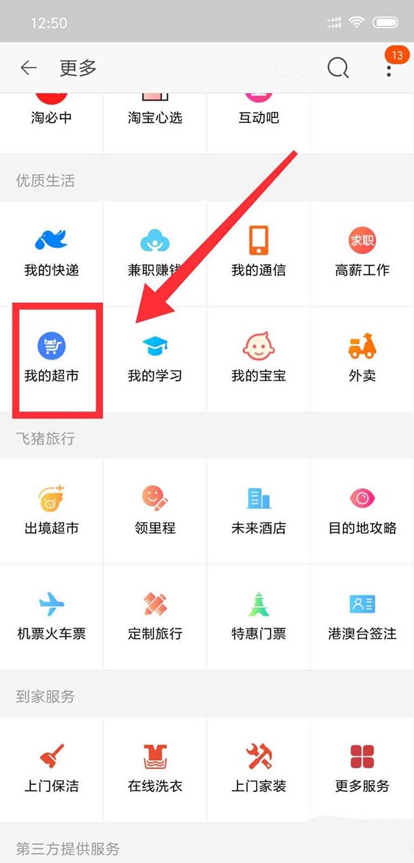 2、页面下滑至优质生活版块儿,点击“我的超市”