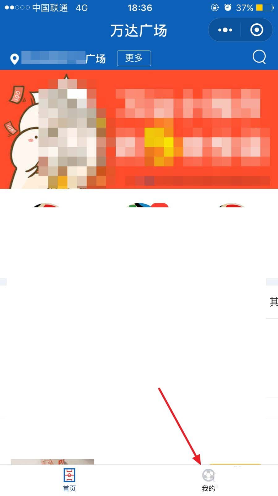3、这就是万达广场小程序的主界面,点击右下方的我的