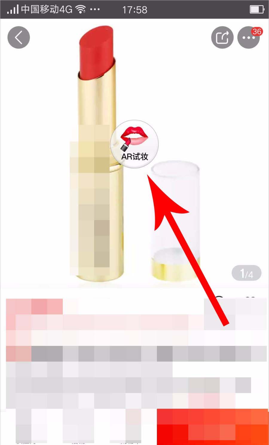 3、进入到商品详情页面后,可以在页面顶部的图片展示区看到“AR试妆”文字提示及图标