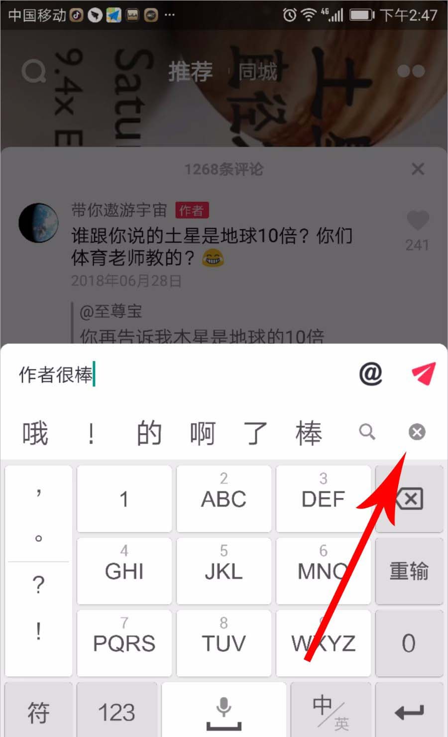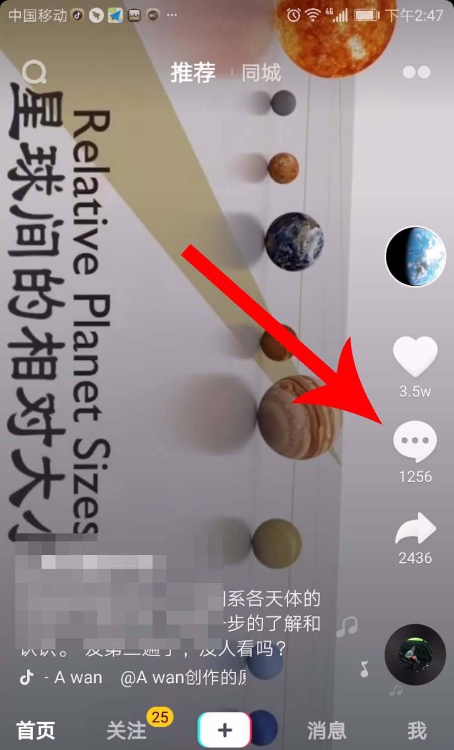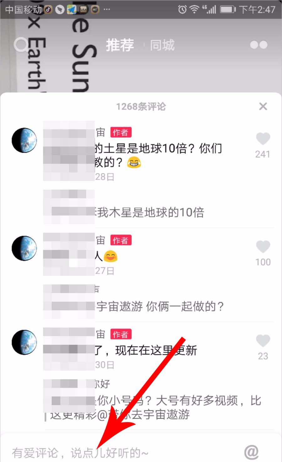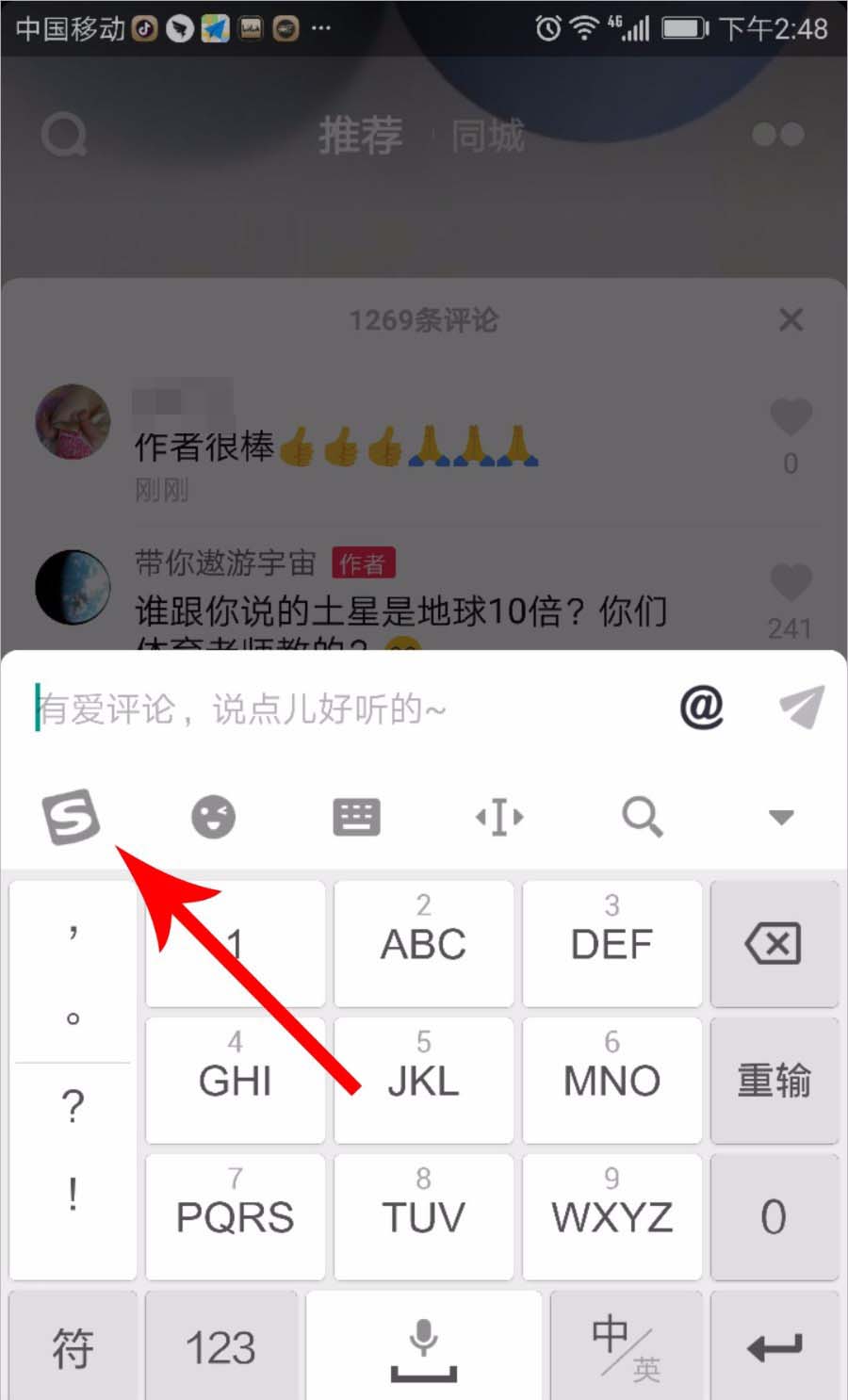 1、点击打开抖音视频的评论按钮,然后点击底部的评论输入框