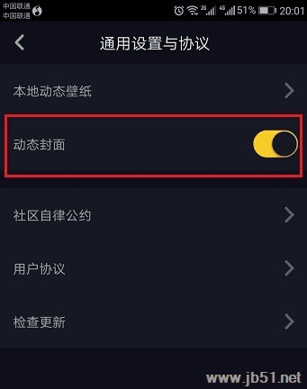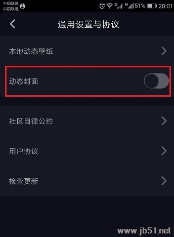 进去动态设置与协议界面之后,可以看到动态封面功能还没有开启,如图所示: