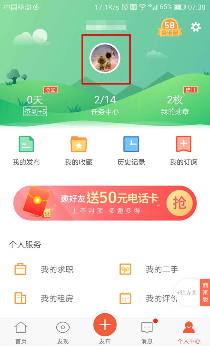 1、大家进入58同城之后,点击下方的‘个人中心’,毕竟这是和个人的设置有关。