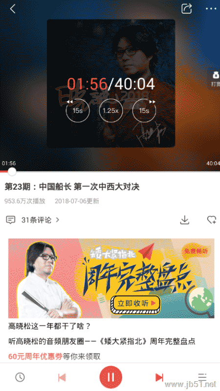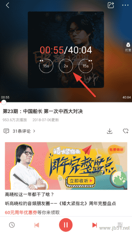 2、接下来大家就要进入电台的播放页面,然后过去点击封面,从而唤起调节语速的功能,通过中间的按钮来点击调节语速。