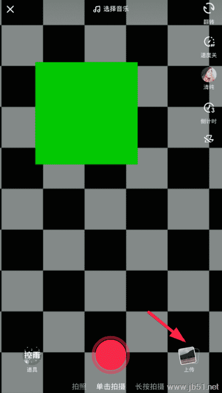 1、用户们要是想在抖音里拍摄横屏视频,其实现在只有本地上传的视频才能进行调整,大家需要点击下方“+”按钮进入拍摄页面,选择右下角“上传”按钮。