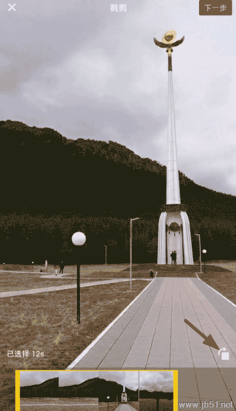 2、大家在选择好想设置为横屏的本地视频后,就可以在裁剪页面右下角点击按钮,进行视频方向的调整了。