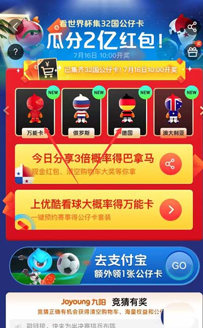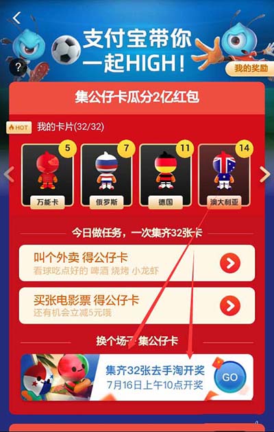 以上就是支付宝世界杯公仔卡抽奖的方法,希望大家喜欢,请继续关注脚本之家。