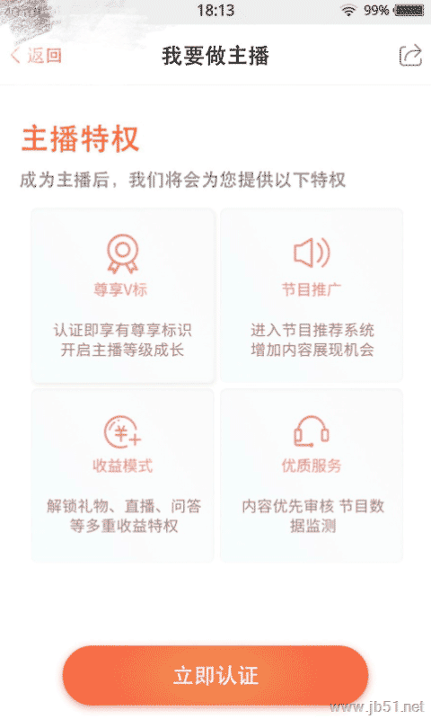 4、然后可以选择向下滑动(喜马拉雅FM关于主播的各种介绍),或者直接点击立即认证;