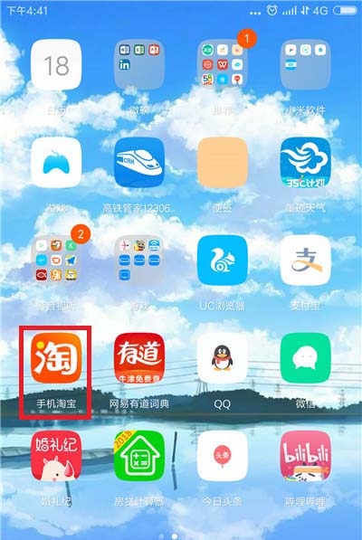 1、打开手机,在手机中找到淘宝APP并点击打开,如图所示。