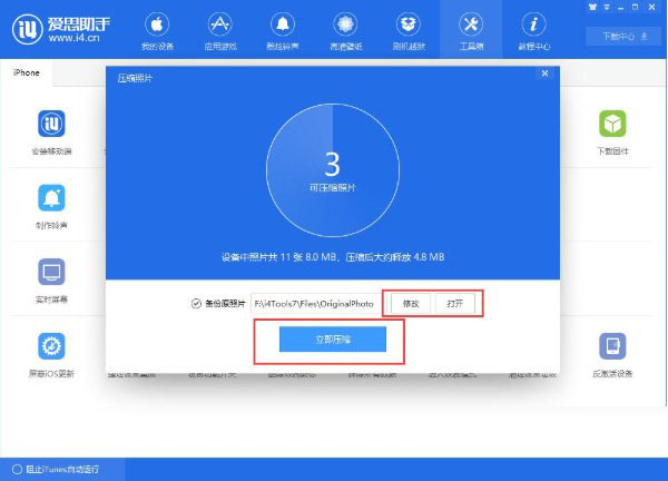 爱思助手压缩照片功能的使用方法: