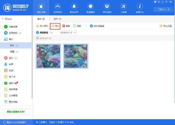 5、如果你只需要将设备中的照片导出到电脑,或删除不需要的照片,可以直接在【我的设备】—【照片】中进行操作。