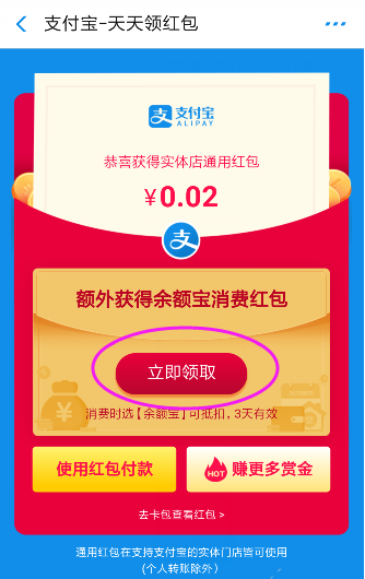 4、这时,你就会看到余额宝消费红包了,点击,你就会获得大红包了,如图所示