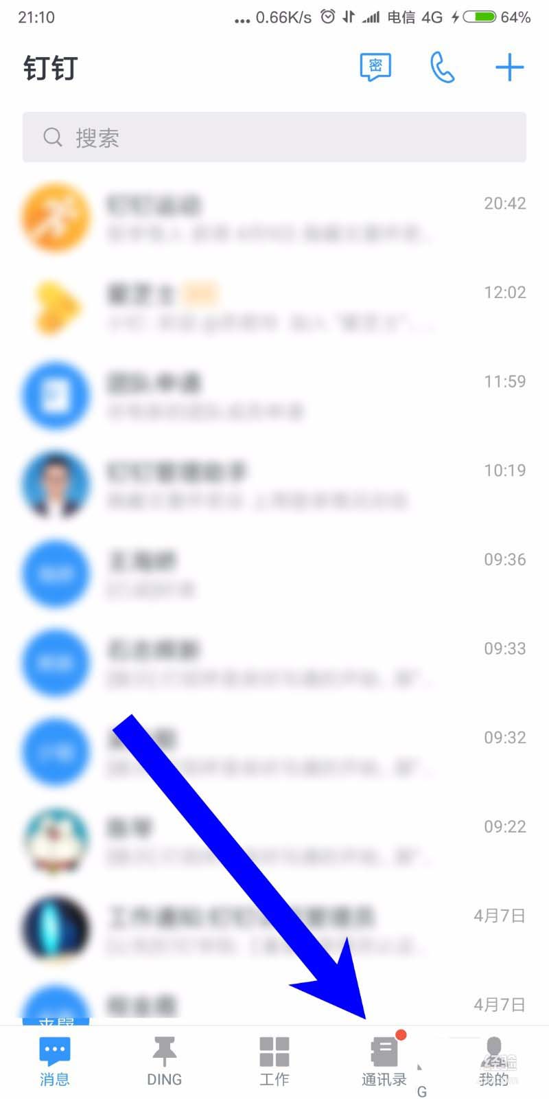 2、接着点击下方菜单中的通讯录,点击进入,如下图所示,