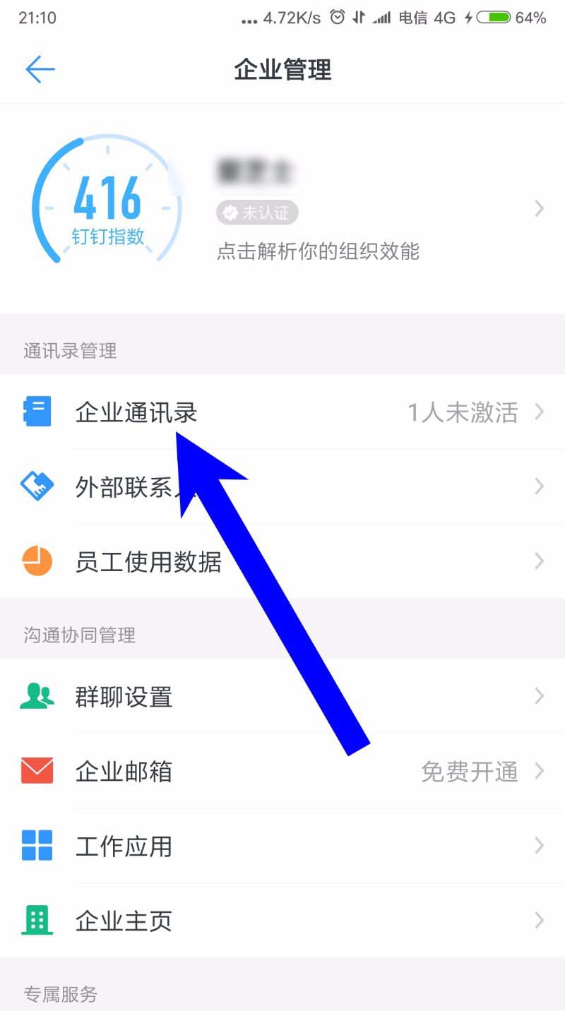 4、接着我们在列表中找到企业通讯录,点击进入,如下图所示,