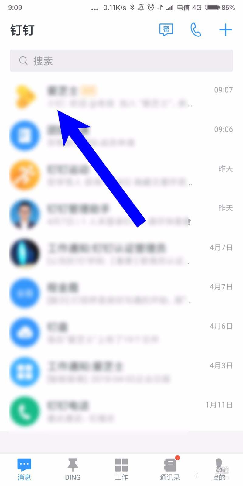 1、首先我们在手机上面找到生产力办公软件钉钉,点击打开,如下图所示,