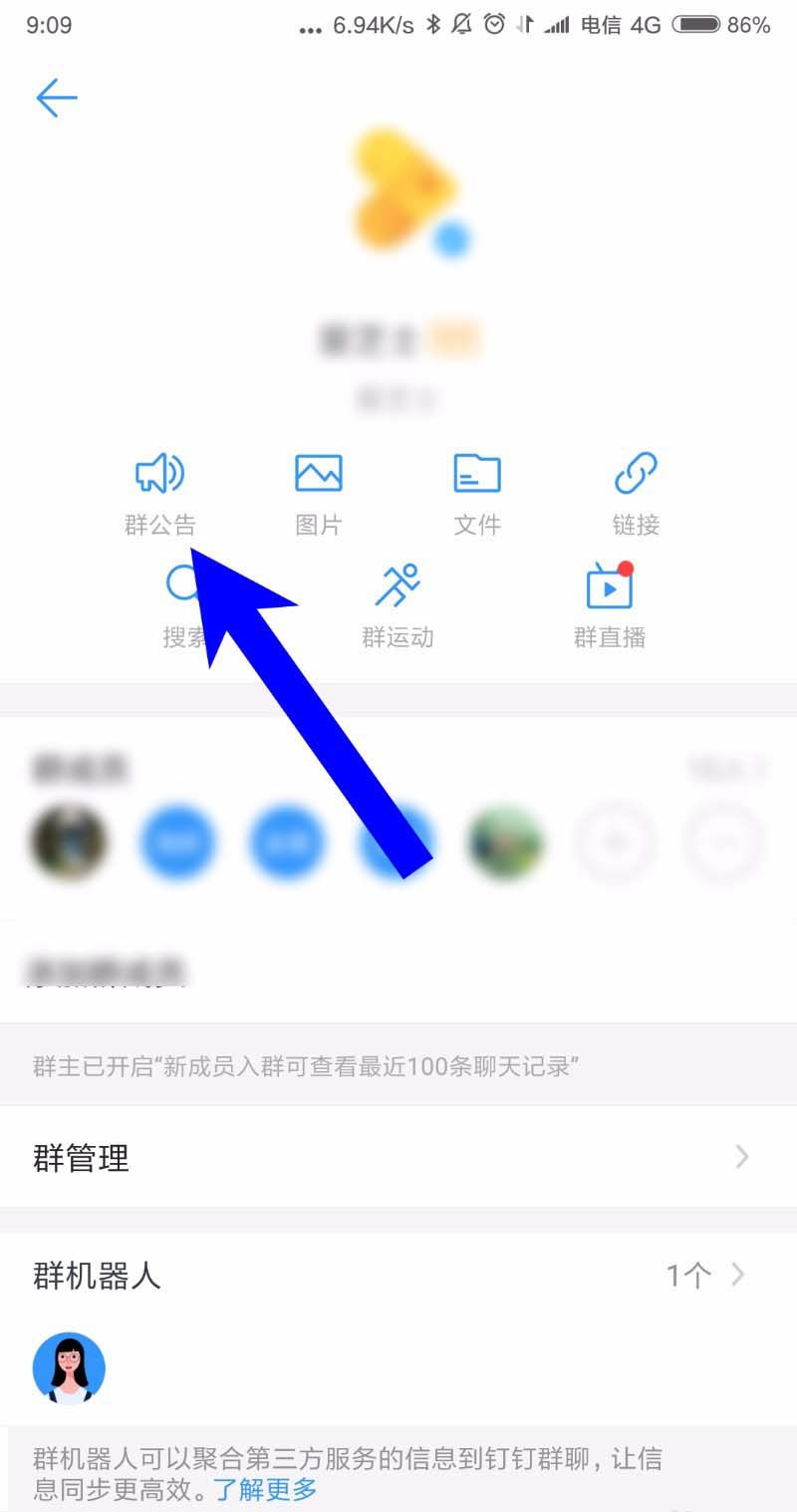 4、接着在群信息页面找到群公告,点击打开,如下图所示,