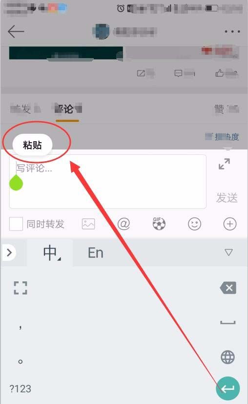 7、发表内容区中,按住手指不放,选择粘贴选项。