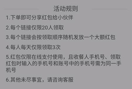 1、下单实付金额达到10元及以上,方可获取红包进行分享。