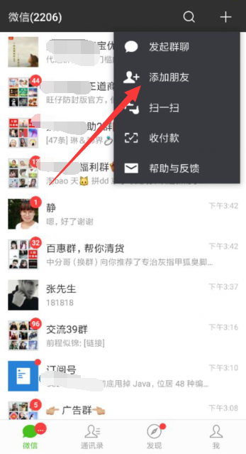 首先打开微信,点击添加好友,进去
