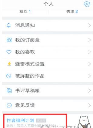 我们需要打开白熊阅读的官方APP,在【我的】界面中点击最下方的【作者福利计划】