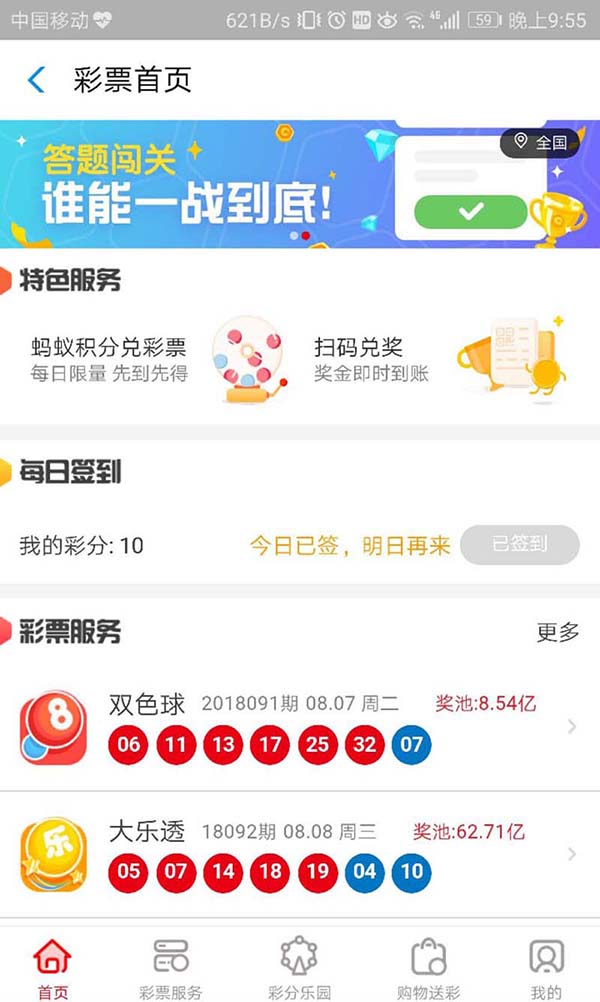 支付宝彩票可以签到,签到可以免费获得彩分,该怎么签到呢?下面我们就来看看详细的教程。