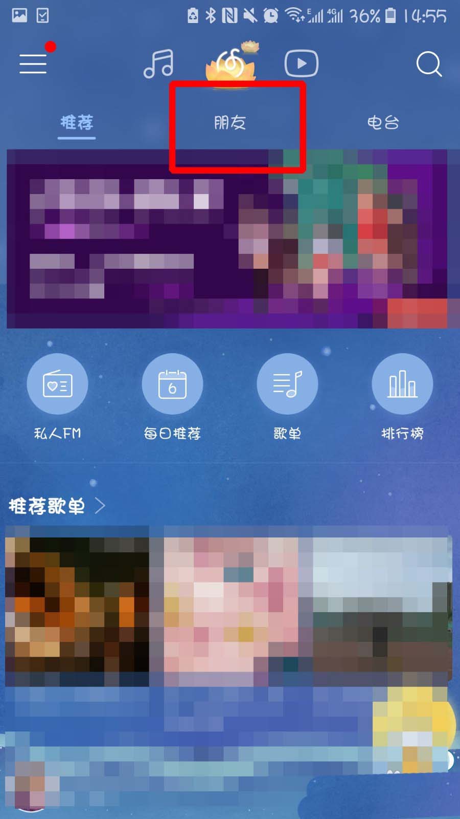1、打开APP,点击首页上方的【朋友】标志